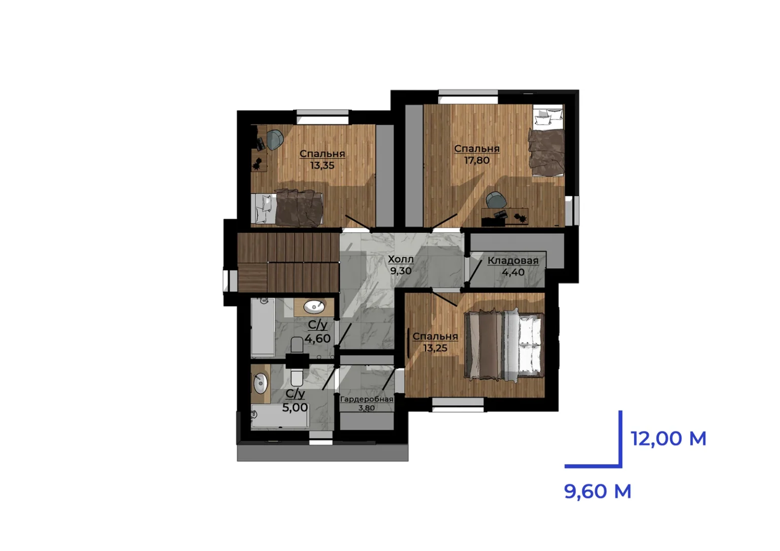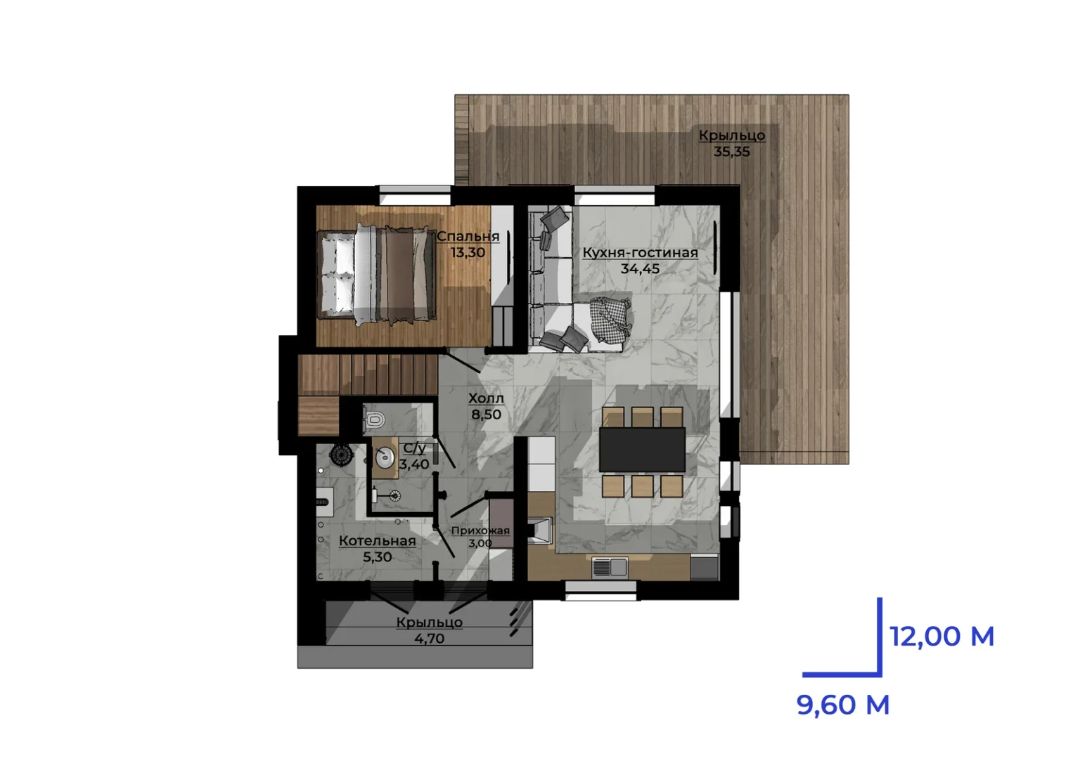 Основная комплектация: мастер-спальня, панорамные окна. Стильный и современный внешний вид дома привлекает внимание и создает приятную атмосферу. Умная планировка позволяет оптимально использовать пространство и обеспечивает маскимальный комфорт для жильцов. Функцианальные пространства: отдельный кабинет или рабочая комната предоставляют возможность работать или учиться дома, обеспечивая комфортное рабочее пространство.
